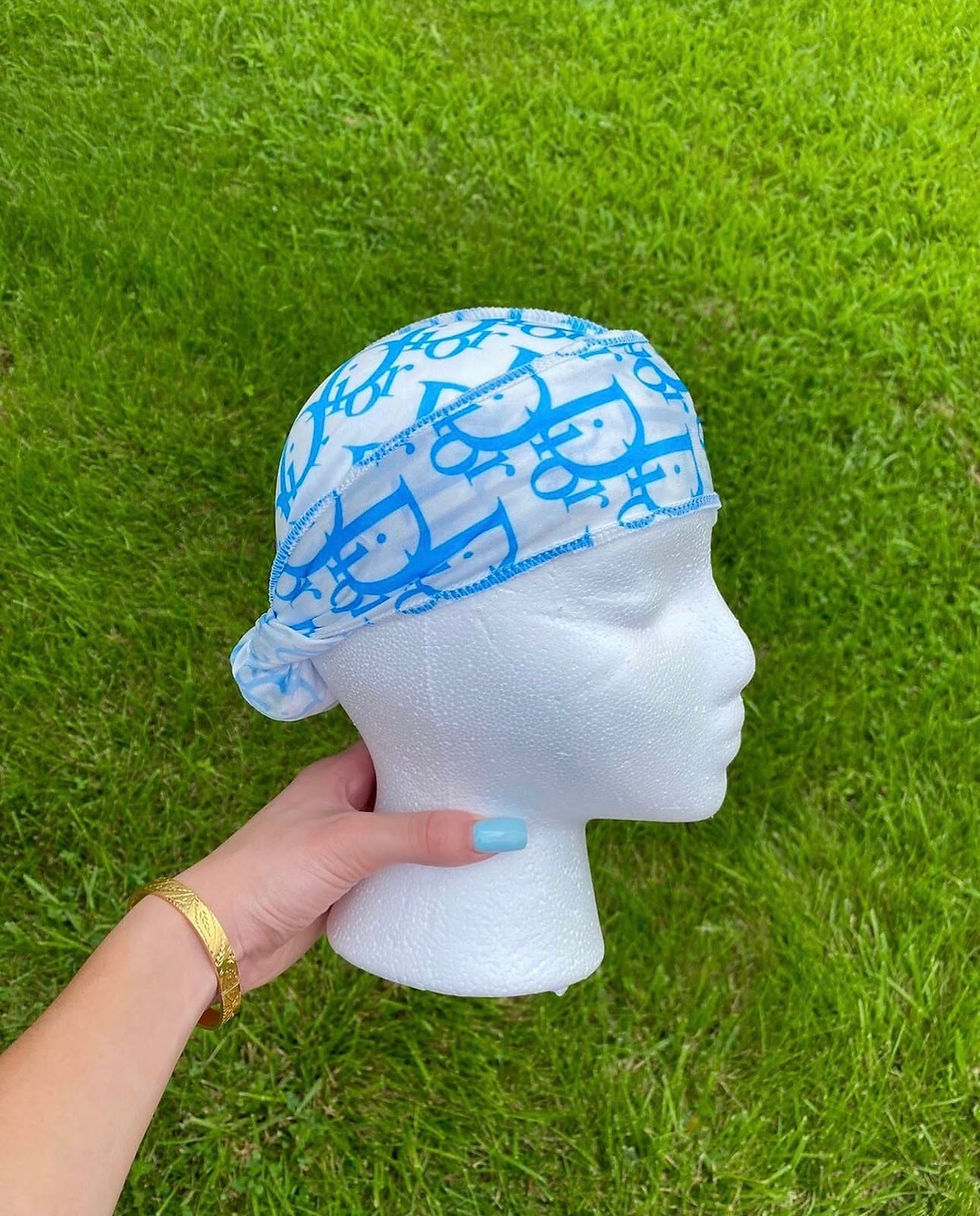 Durag Satin Monogram Bleu – Edition Luxe